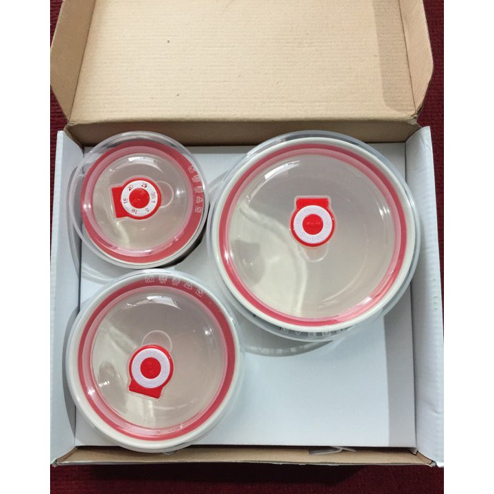 Bộ 3 bát sứ có nắp hút chân không cao cấp sẽ giúp bạn bảo quản thực phẩm một cách an toàn và tiện lợi nhất.Giữ nhiệt độ nóng lạnh cũng rất tốt nếu như bạn muốn mang đồ ăn đi ra khỏi nhà,đồng thời giữ được hương vị nếu bạn bảo quản trong tử lạnh sẽ không bị mất mùi và pha lẫn mùi vị trong tủ lạnh mỗi khi mở ra.