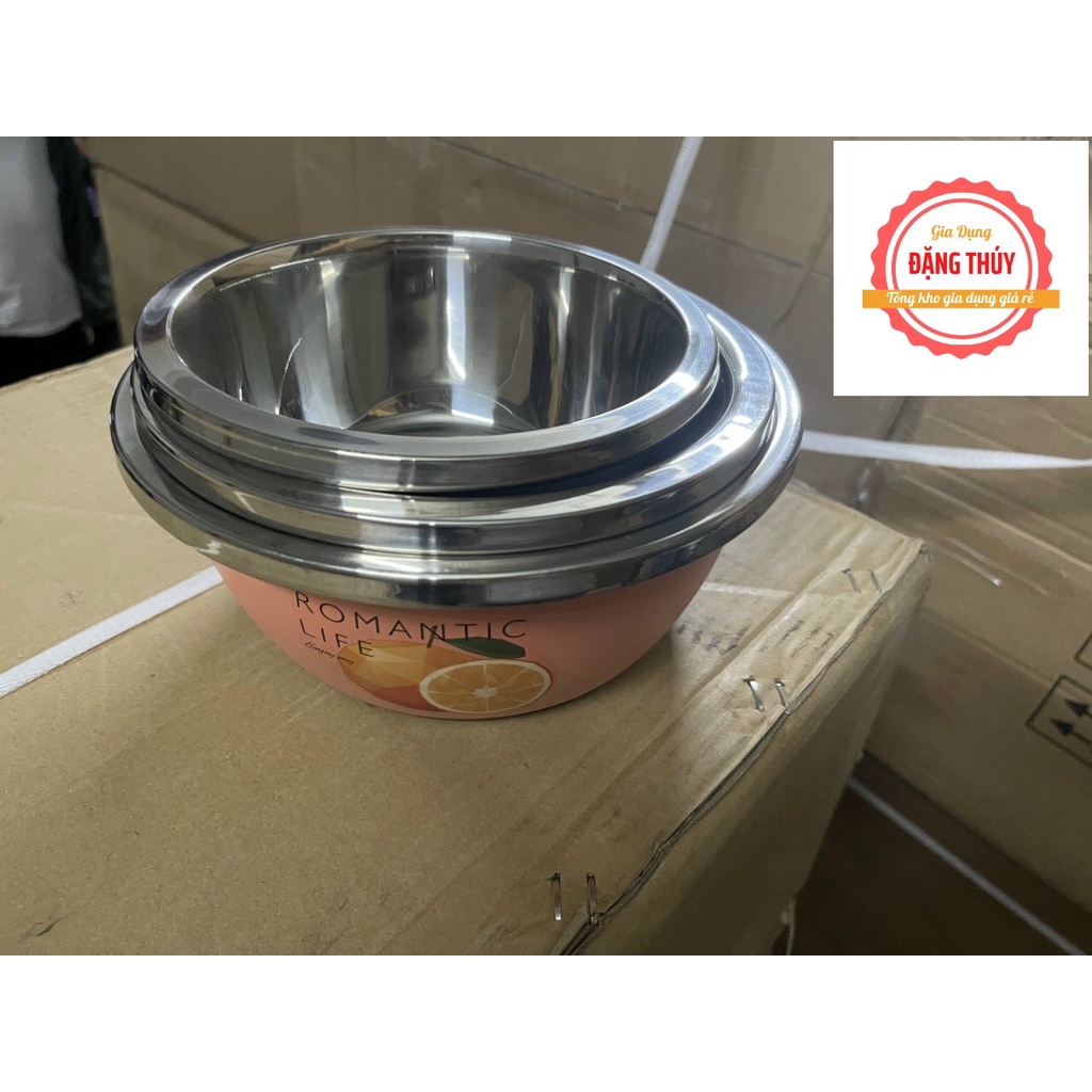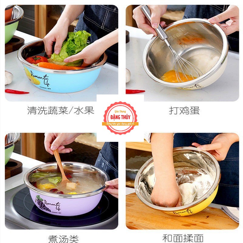 BỘ 3 CHẬU INOX SẮC MÀU CHỐNG NÓNG, CHỐNG MÀI MÒN CẦM NHẸ TAY DÙNG ĐỰNG THỰC PHẨM MỚI 2021