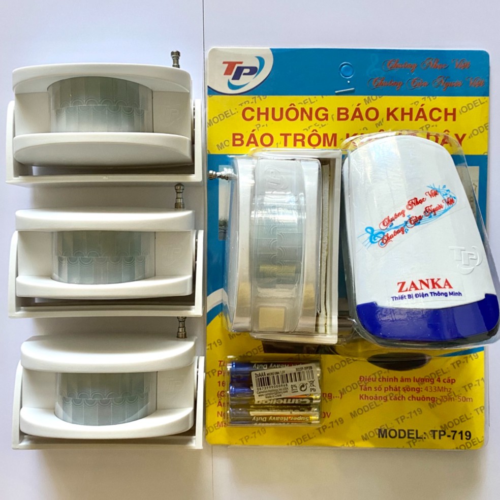 Thiết Bị Điện Gia Dụng > Mạch điện & Phụ tùng > Thiết bị báo động nhà ở || Bộ 3 Chuông 1 Mắt báo khách [Trắng] TP-719-IV kết hợp báo trộm cảm ứng hồng ngoại chuyển động [TẶNG KÈM PIN]Còn hàng