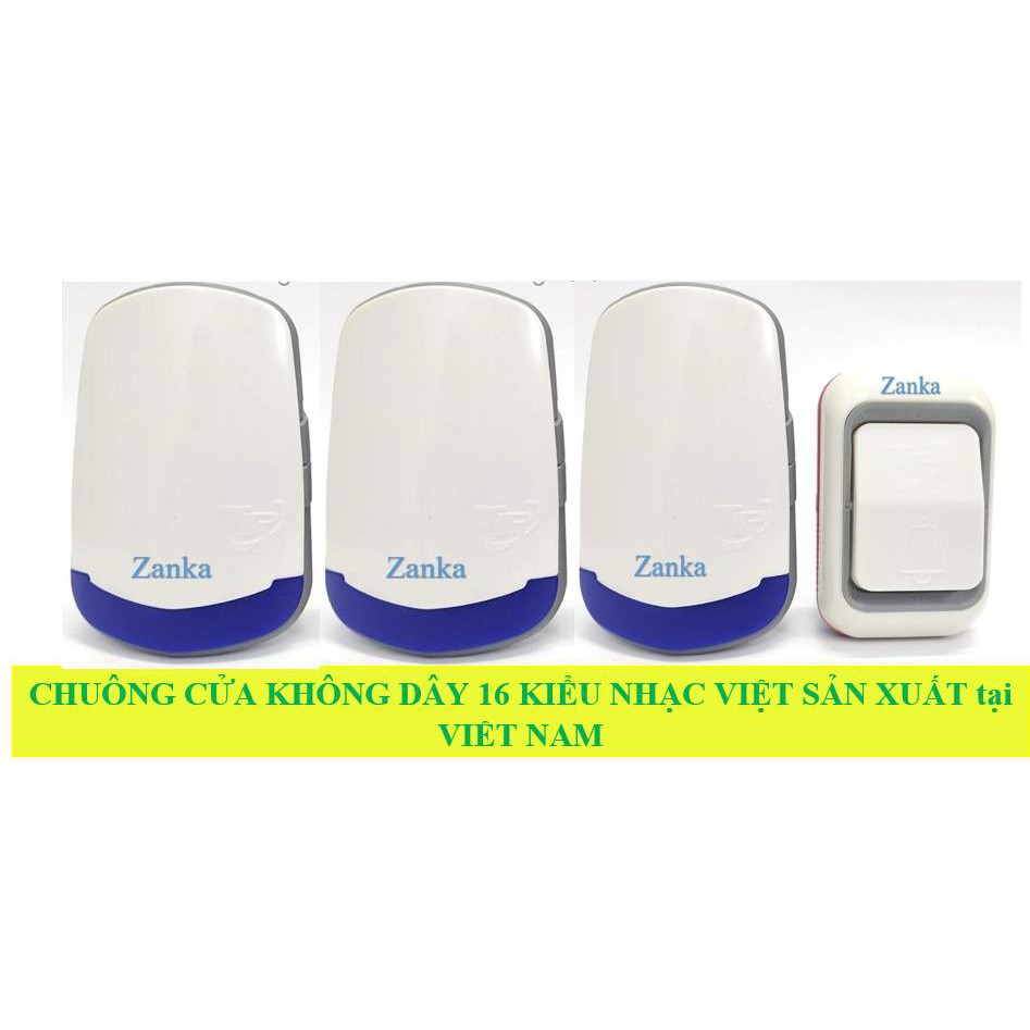 Bộ 3 chuông 01 nút nhấn chuông cửa không dây Zanka TP-717Chuông cửa sản xuất tại Việt Nam, Chuông có 16 Kiểu Chuông nhạc Việt thay đổi tùy sự lựa chọn