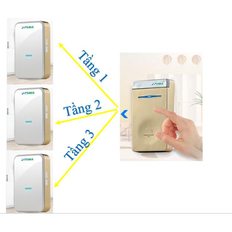 Bộ 3 chuông 1 nút nhấn chuông cửa không dùng Pin ZK718