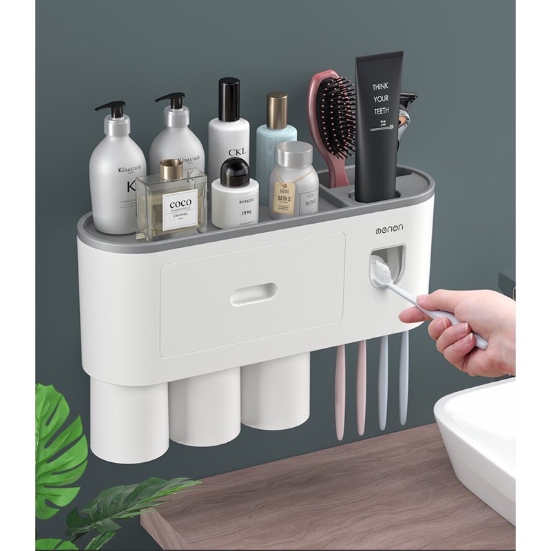 ✅Gồm: 1 Kệ nhà tắm tích hợp chức năng lấy kem tự động + Cốc hút từ tính + miếng dán tường.