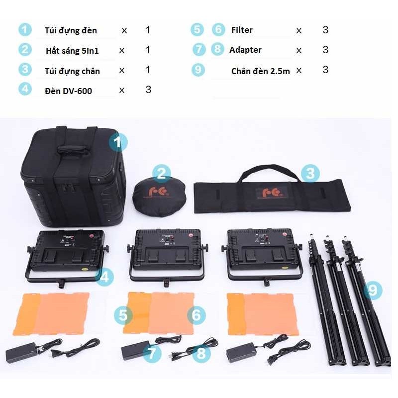 Tên sản phẩm: Bộ kit 3 đèn DV-600 Falconeyes