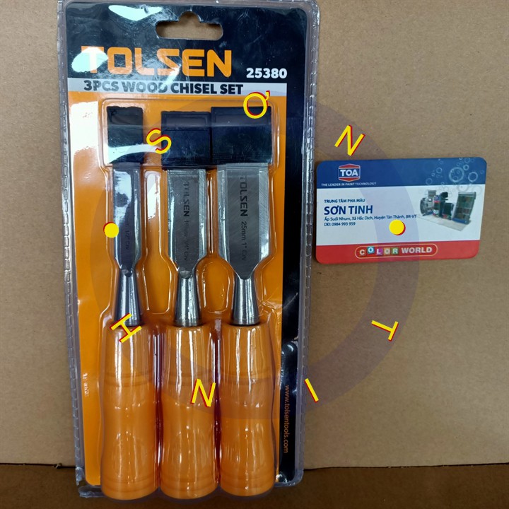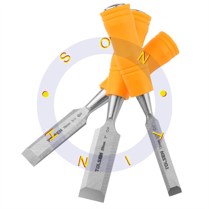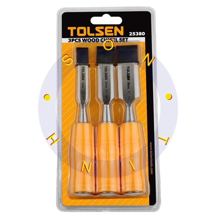 #Bộ đục gỗ 3 cây tolsen mã số 25380 sản xuất từ chất liệu thép cứng cáp có độ bền cao với thiết kế nguyên khối và cán đục được bọc nhựa sử dụng cho ngành mộc dùng cho việc đục gỗ vv...• Size: 3mm (1/2 "), 19mm (3/4"), 25 mm (1 ")
