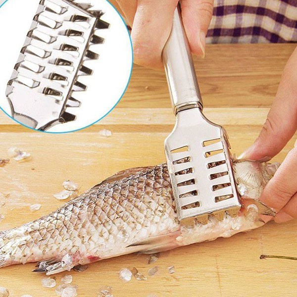 - Dụng cụ đánh vảy cá rất dễ sử dụng, chỉ cần kéo ngược hướng xếp của vảy cá sẽ lấy sạch vảy cá và bề mặt cá bằng phẳng.