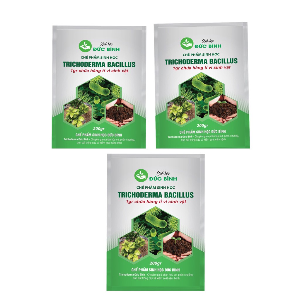 COMBO GỒM 3 GÓI Chế phẩm men vi sinh nấm đối kháng trichoderma bacillus Đức Bình 200grSử dụng chế phẩmTrichoderma Bacillus Đức Bình bạn có lợi gì?
