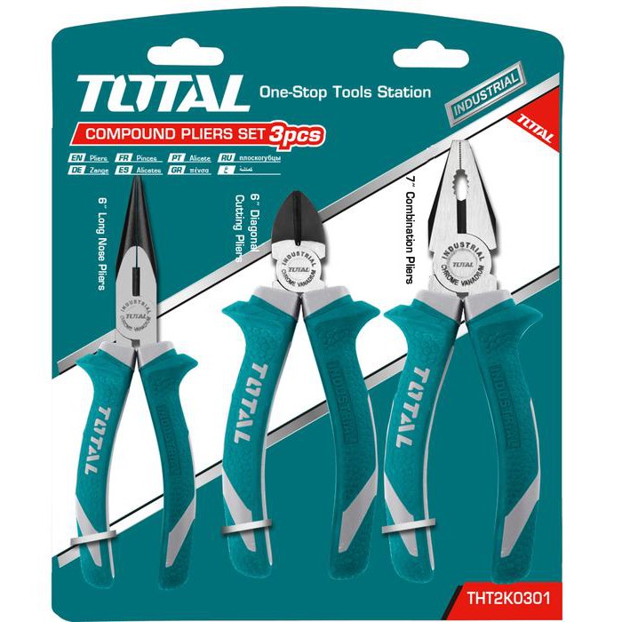 Giới thiệu sản phẩm BỘ 3 KỀM RĂNG, CẮT VÀ NHỌN TOTAL THT2K0301- Total Tools là thương hiệu mới được nhập khẩu vào thị trường Việt Nam, hứa hẹn sẽ mang đến nhiều trải nghiệm mới cho giới xây dựng và cơ khí. Total là thương hiệu nổi tiếng thế giới cung cấp dụng cụ dân dụng, dụng cụ cầm tay và các máy móc dùng điện, thiết bị an toàn cho gia đình và nhiều công trường xây dựng. Nhãn hiệu Total Tools có nguồn gốc ở Đức và được sản xuất tại Trung Quốc theo các tiêu chuẩn chất lượng của Mỹ, Châu Âu.