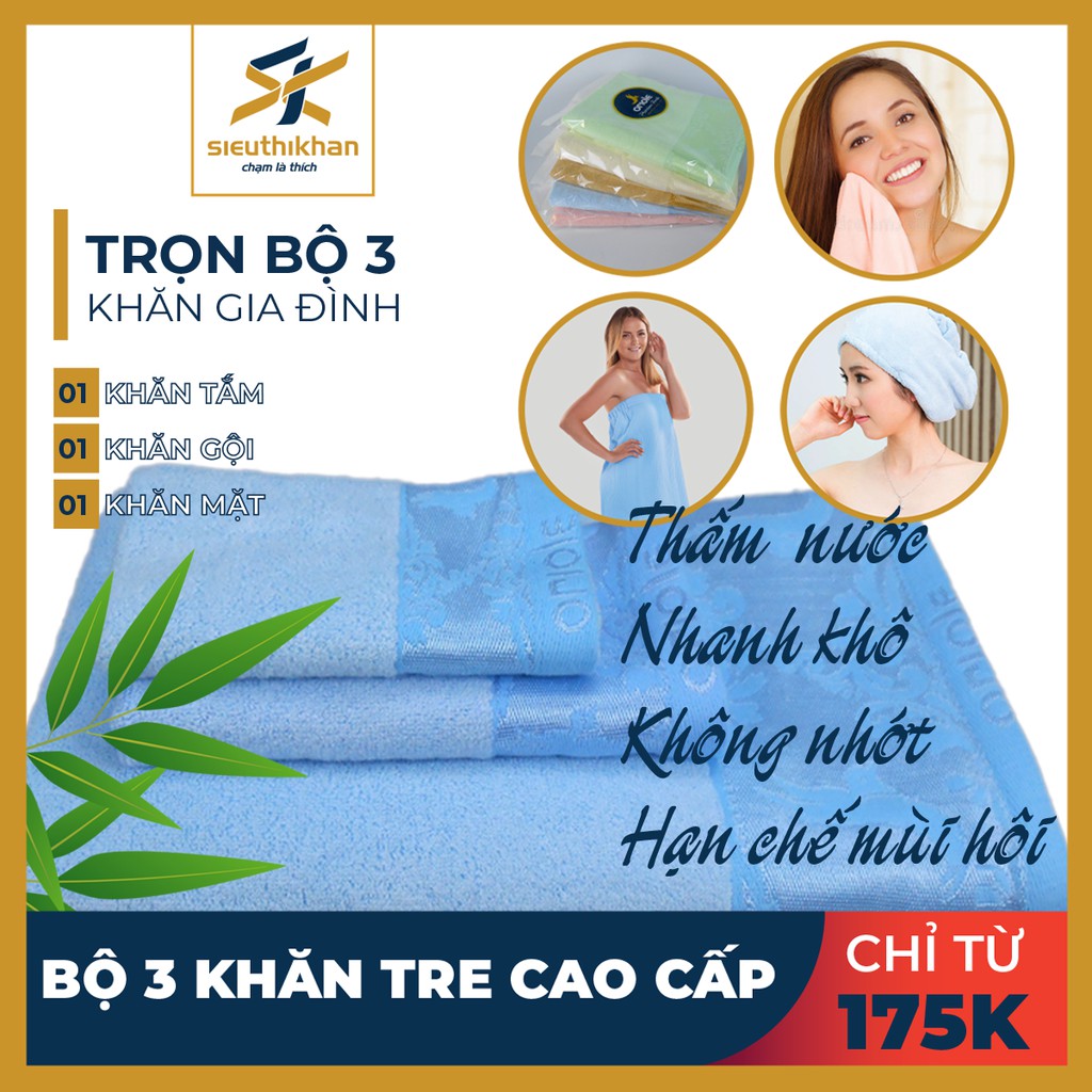 BỘ 3 KHĂN CAO CẤP CHO GIA ĐÌNH: 01 khăn tắm 70*140cm, 01 khăn tay (khăn gội) 35*78cm, 01 khăn mặt 28*48cm.>>CHÚ Ý: VỚI BỘ KHĂN GIAO MÀU NGẪU NHIÊN SẼ GIAO KHĂN TẮM, KHĂN GỘI, KHĂN MẶT NGẪU NHIÊN