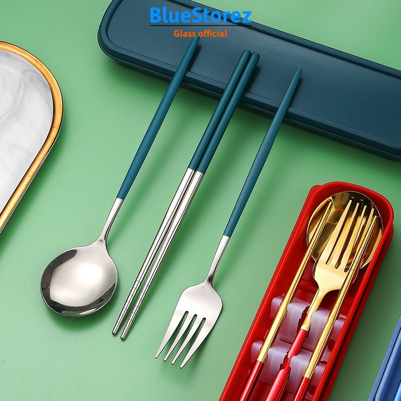 Nhà cửa & Đời sống > Bộ đồ bàn ăn > Bộ dao kéo || Bộ 3 món muỗng đũa thìa nĩa inox 304 cao cấp mạ vàng-dụng cụ ăn cơm văn phòng dã ngoại-BLUESTORECòn hàng