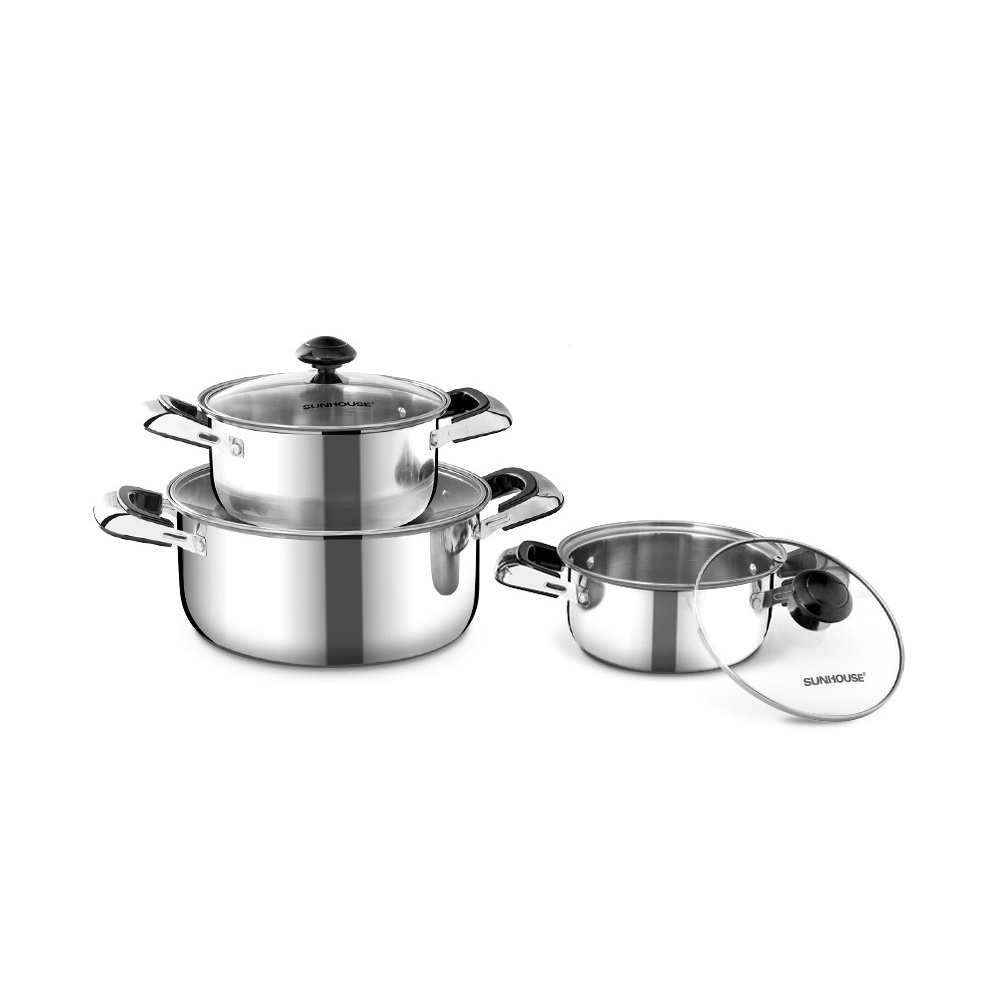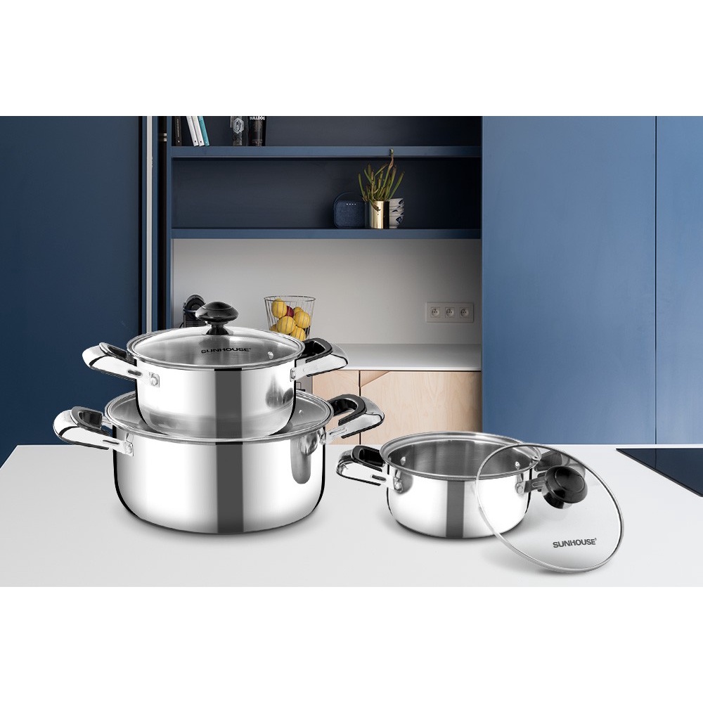 BỘ 3 NỒI INOX 1 ĐÁY SUNHOUSE SH365 size 16-20-24cm (Dùng Mọi Loại Bếp)