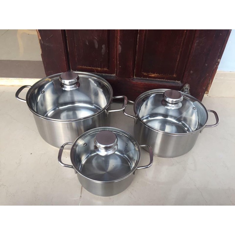 BỘ 3 NỒI INOX 3 ĐÁY FIVESTAR NẮP KÍNH CAO CẤP DÙNG ĐƯỢC BẾP TỪBộ sản phẩm 3 nồi inox Fivestar với 3 nồi có kích thước khác nhau giúp bạn linh hoạt trong việc nấu nướng, vừa góp phần tô điểm thêm nội thất gian bếp nhà bạn. Fivestar được làm từ chất liệu inox cao cấp đến từ Nhật Bản và Hàn Quốc an toàn cho sức khỏe người sử dụng, đồng thời bền bỉ đảm bảo cho bạn sử dụng trong thời gian dài. Bộ 3 nồi Fivestar còn có thiết kế quai cầm chống bỏng rất an toàn cho người dùng. Đây sẽ là người bạn đồng hành đáng tin cậy cho các bà nội trợ đảm đang.