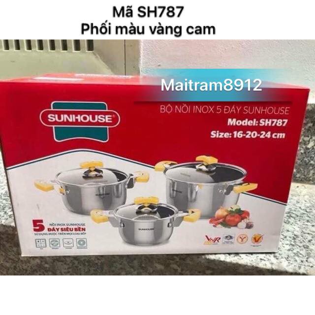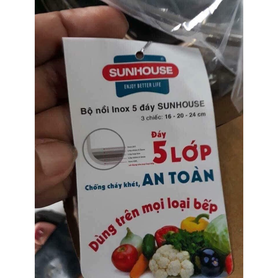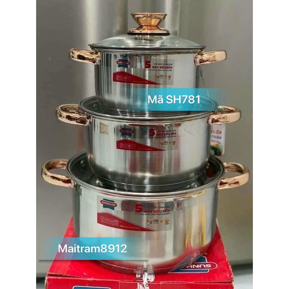 Nhà cửa & Đời sống > Dụng cụ nhà bếp > Nồi || BỘ 3 NỒI INOX 5 ĐÁY SUNHOUSE SH781 - 787 - 788, dùng được mọi loại bếp, kể cả bếp điện từCòn hàng