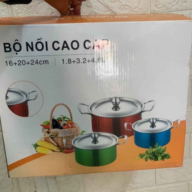 BỘ 3 NỒI INOX CAO CẤP 16+20+24CM,,
