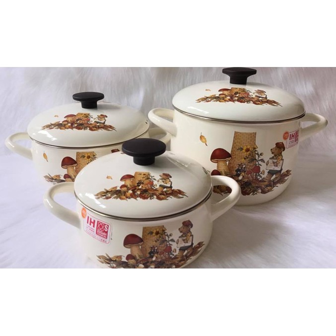 Bộ 3 nồi tráng men Fujihoro FTCV-3 hoạ tiết đẹp mắt