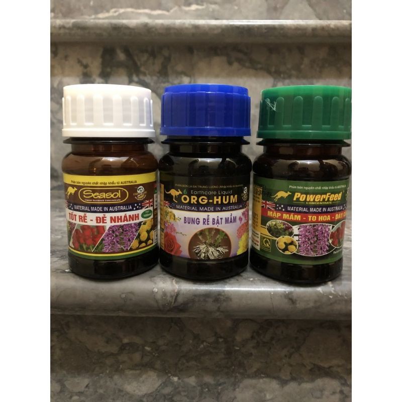 Sản phẩm Kích rễ Seasol, Kích chồi Org Hum và Kích hoa Powerfeed là dòng sản phẩm phân bón hữu cơ đến từ Úc. Bộ ba dòng sản phẩm phân bón hữu cơ này được dùng cho 03 giai đoạn sinh trưởng chính của cây trồng - đặc biệt là hoa hồng và hoa lan cho hiệu quả cao.Dòng sản phẩm phân bón Seasol được chiết xuất từ tảo bẹ nâu. Được dùng chính để kích thích sự phát triển của rễ non, giúp bộ rễ phát triển mạnh mẽ, rễ mập mạp, phục hồi bộ rễ bị hư tốn sau thời gian ngập úng và hạn hán. Bên cạnh đó, phân bón seasol còn có chức năng kích thích sự đẻ chồi, giúp chồi phát triển mạnh mẽ hơn.