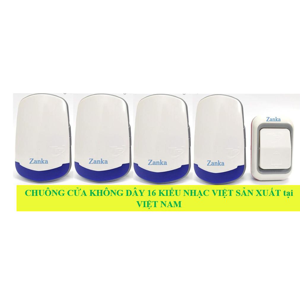 Bộ 4 Chuông 1 nút nhấn chuông cửa không dây Zanka TP-717 ( dùng cho ngôi nhà cao tầng)Chuông cửa sản xuất tại Việt Nam, Chuông có 16 Kiểu Chuông nhạc Việt thay đổi tùy sự lựa chọn