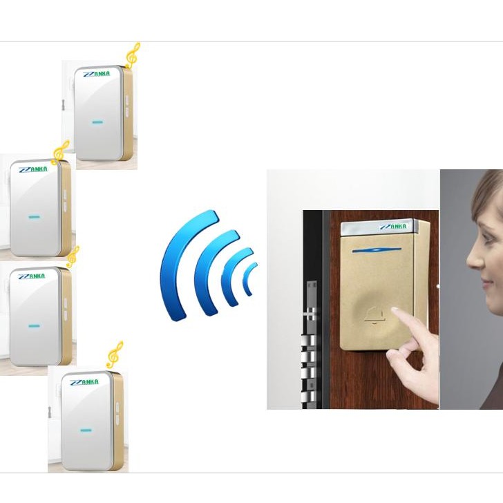 Bộ 4 chuông 1 nút nhấn chuông cửa không dùng Pin ZK718