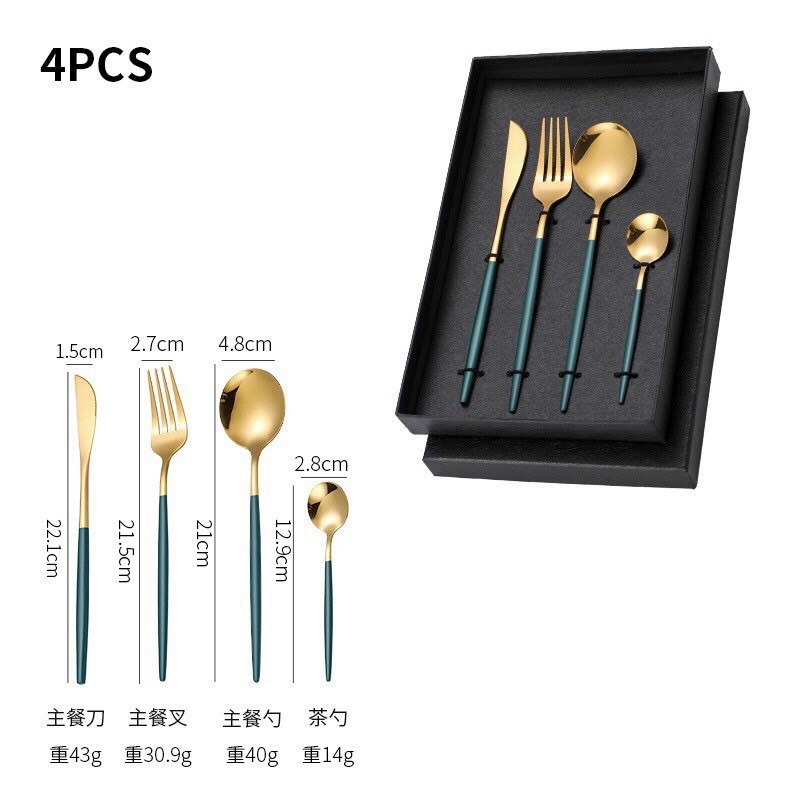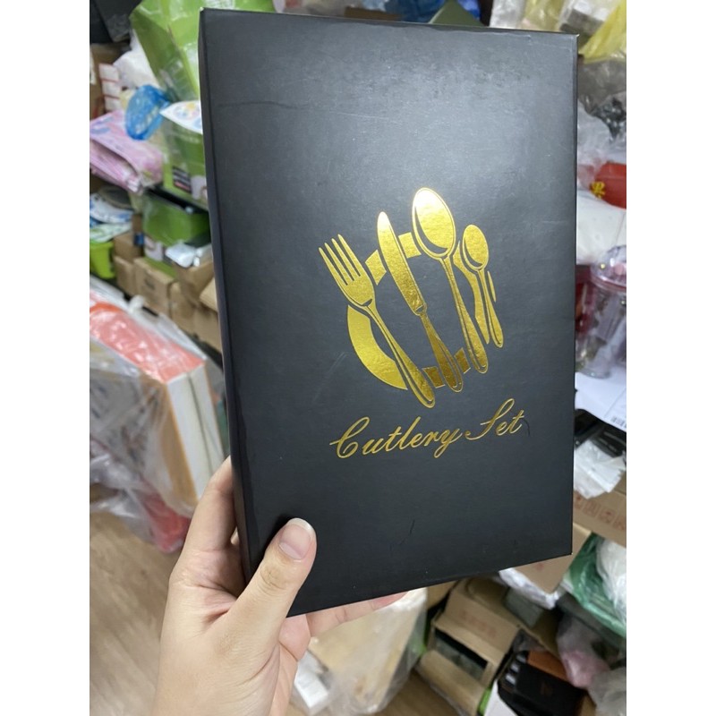 VỀ HỘP 4 CHI TIẾT: DAO NĨA + 2 THÌA Bộ muỗng nĩa dao INOX MẠ Vàng góp phần làm bữa ăn của bạn vừa ngon mắt, vừa ngon miệng.