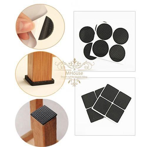 -Bộ sản phẩm gồm 4 miếng lót có thiết kế hình tròn và vuông với kích thước phù hợp với nhiều loại chân bàn; giường; tủ khác nhau. Cách sử dụng đơn giản; bạn chỉ cần bóc lớp keo rồi dán vào chân bàn tủ; mặt còn lại với các đường rãnh nhỏ có tác dụng gia tăng ma sát; hạn chế sự trơn trượt tối đa.