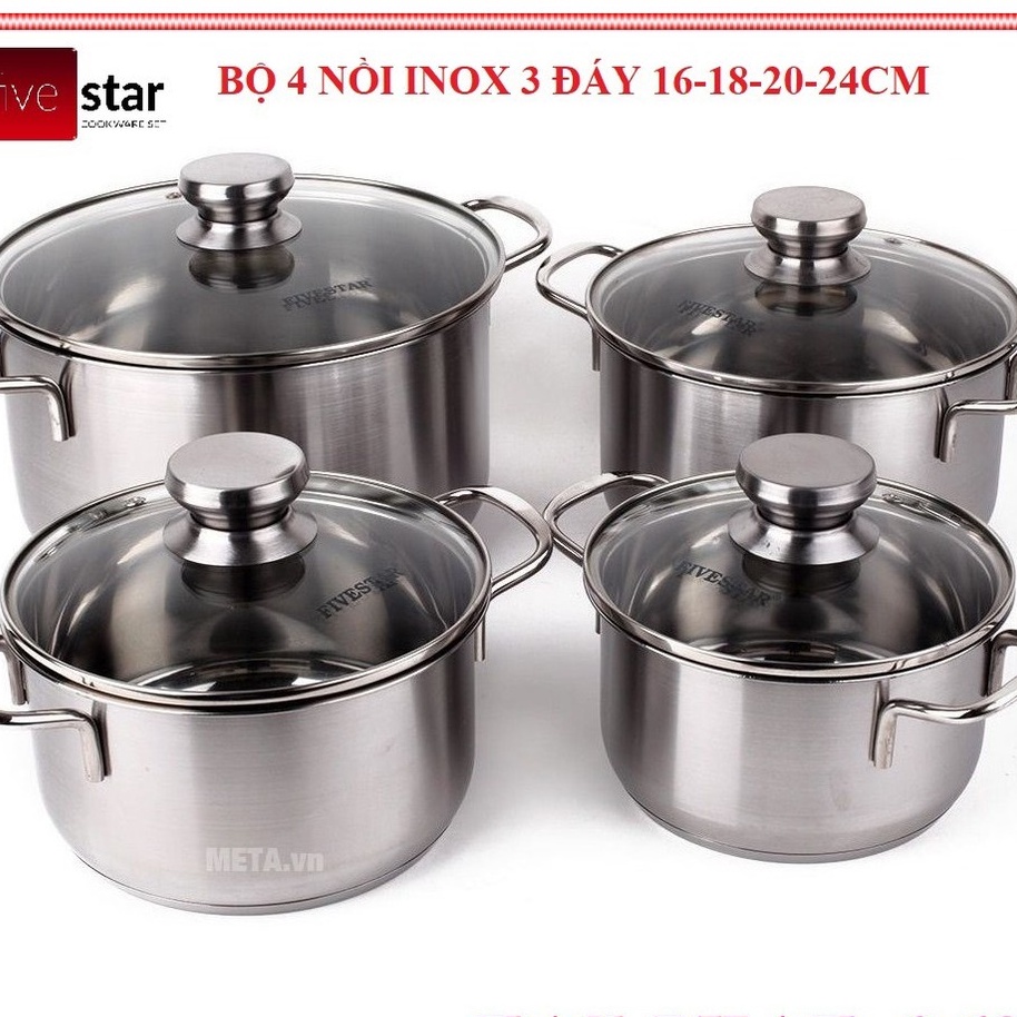BỘ 4 NỒI INOX 3 ĐÁY bảo hành 5 năm