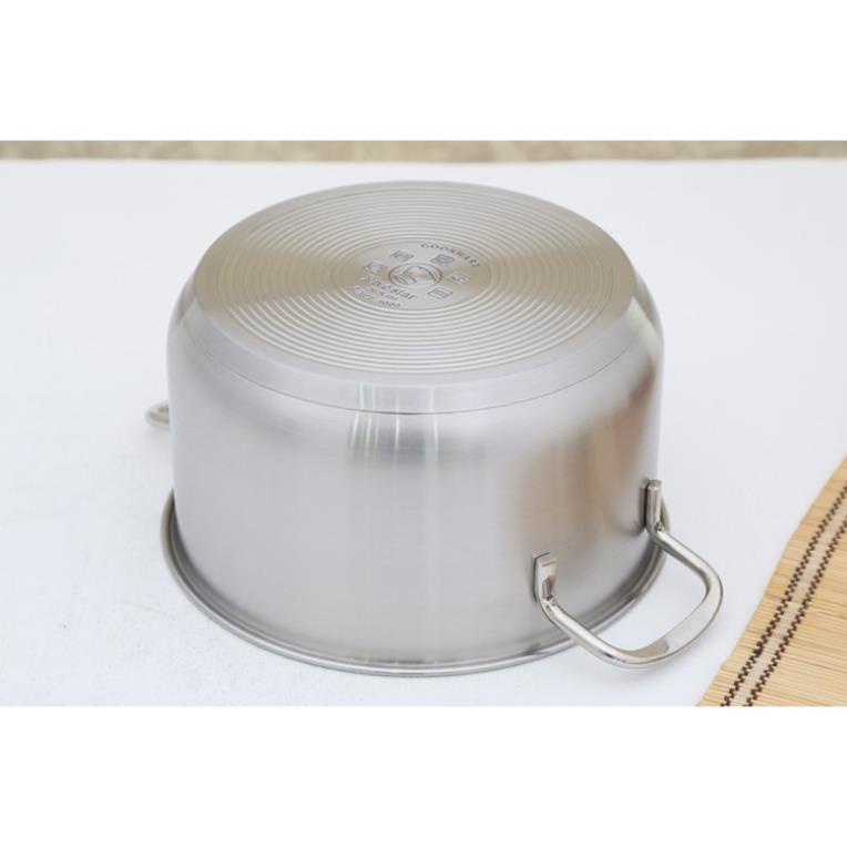 Đáy nồi phẳng cấu tạo 3 lớp (inox 430 – nhôm – inox 430) dày dặn truyền nhiệt nhanh và giữ nhiệt lâu