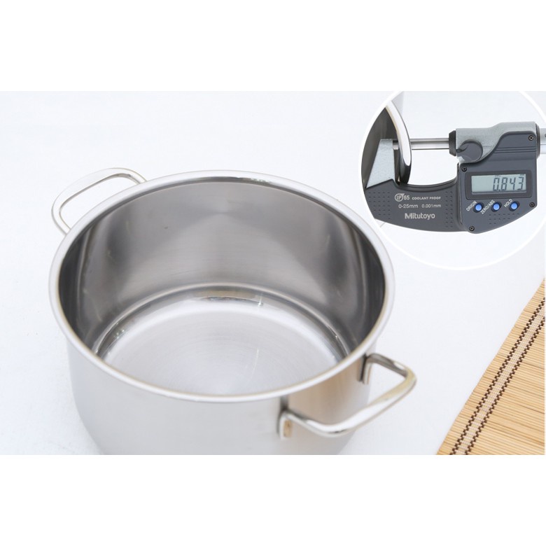 Chất liệu inox 430 ít bị oxy hóa, ít phản ứng với thức ăn, ít trầy xước và dễ lau chùi, giúp nấu ăn an toàn và tiện lợi. Độ dày khoảng 0.8 mm.