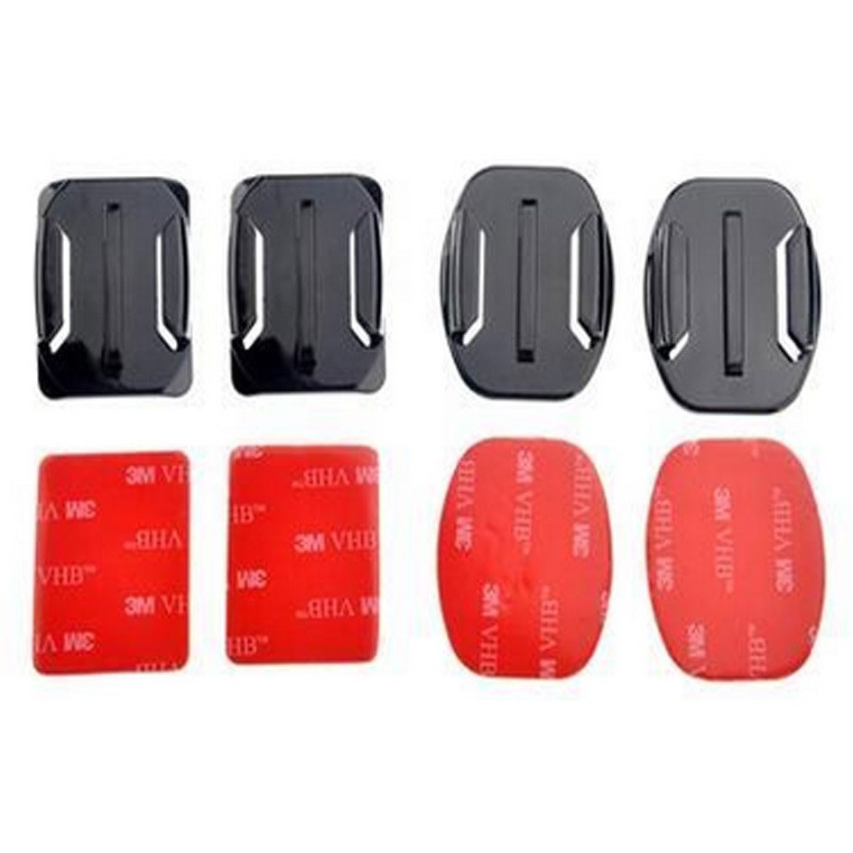 Bộ 4 tấm dán + Đế gài máy: 2 Tấm phẳng, 2 tấm cong- Bộ sản phẩm gồm 4 tấm dán 3M và 4 miếng đế dùng cho các loại máy quay Gopro, SJcam, Xiaomi, ...