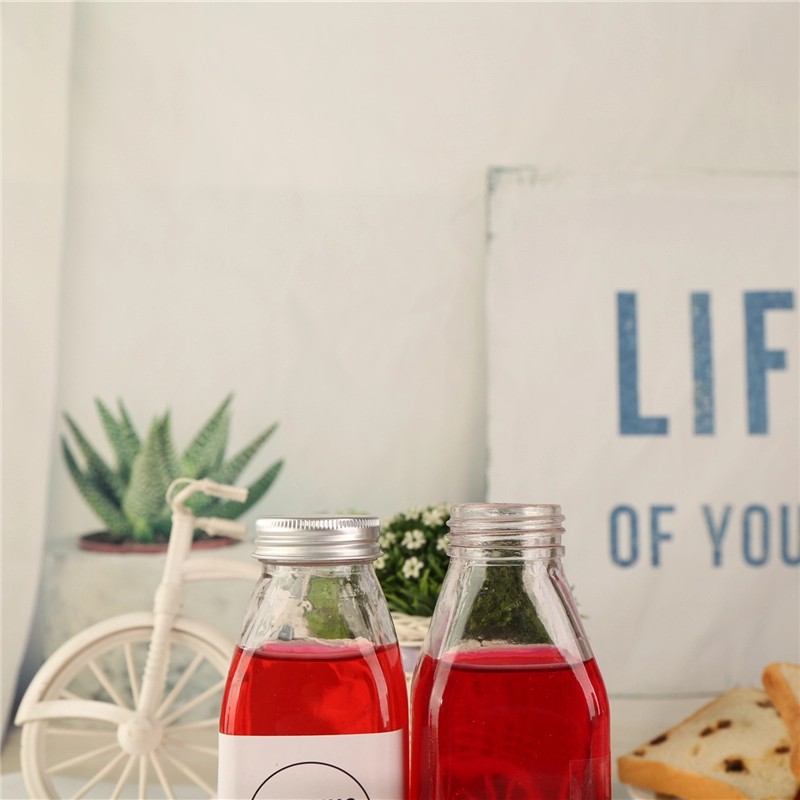 Chai thủy tinh dáng vuông nắp nhôm 350ml sở hữu chất liệu thủy tinh trong suốt và dày dặn.Khả năng chứa: 300ml tới 350ml