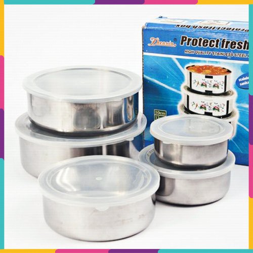Bộ 5 Bát INOX Cao Cấp Có Nắp Đậy Tiện LợiBộ 5 bát inox cao cấp có nắp đậy với thiết kế thông minh vói bát được làm bằng chất liệu inox không rỉ đặc biệt an toàn đẹp sáng bóng.Sản phẩm bao gồm 5 thố với đường kính lần lượt là 10cm, 12cm, 14cm, 16cm và 18cm cho bạn thoải mái đựng các loại thực phẩm cần thiết để cất vào trong tủ lạnh và dễ dàng tìm kiếm khi cần dùng