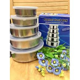 Bộ 5 bát inox lạnh có nắp, các bác mua cái này về để đồ ăn trong tủ lạnh vừa sạch, an toàn lại rẻ nữa nè