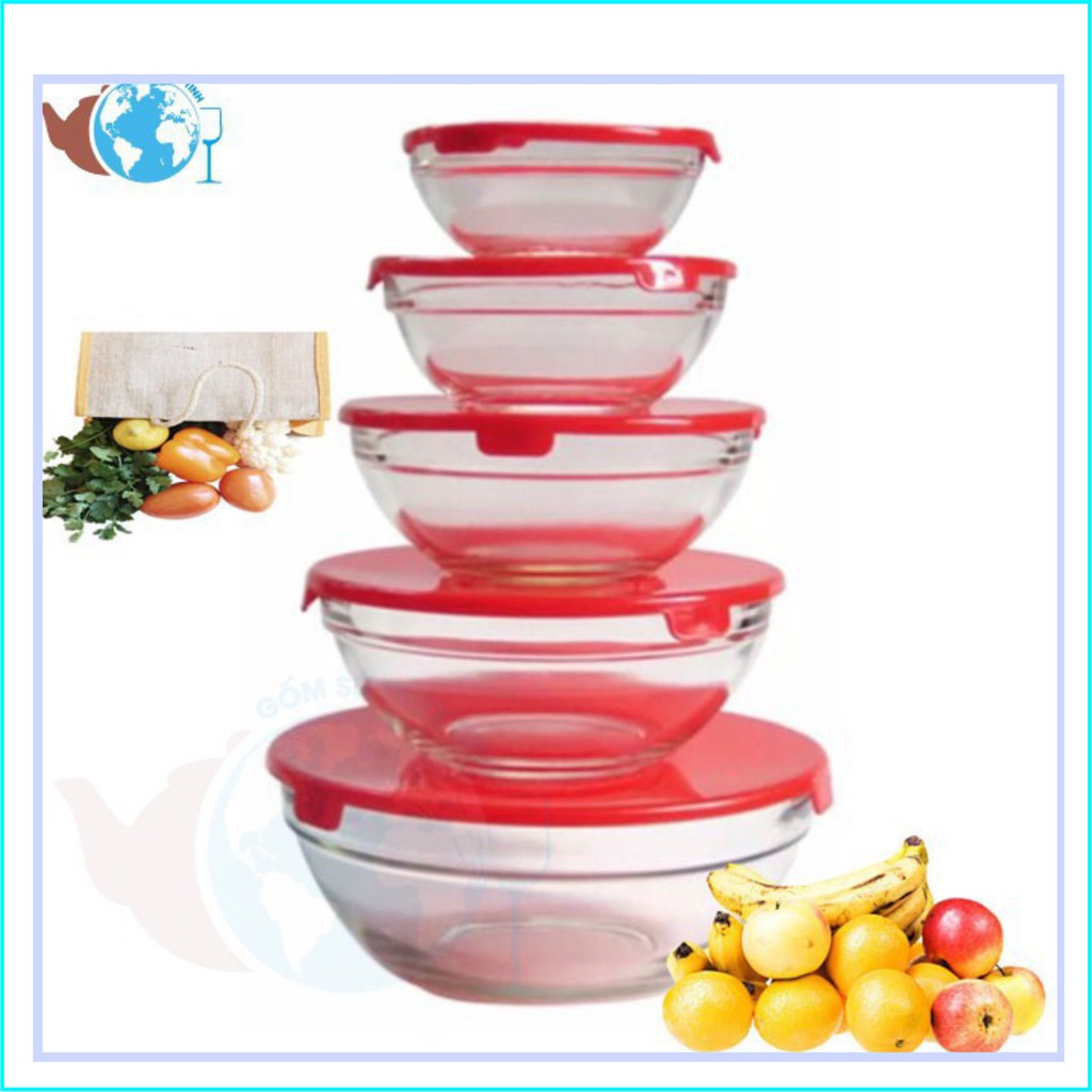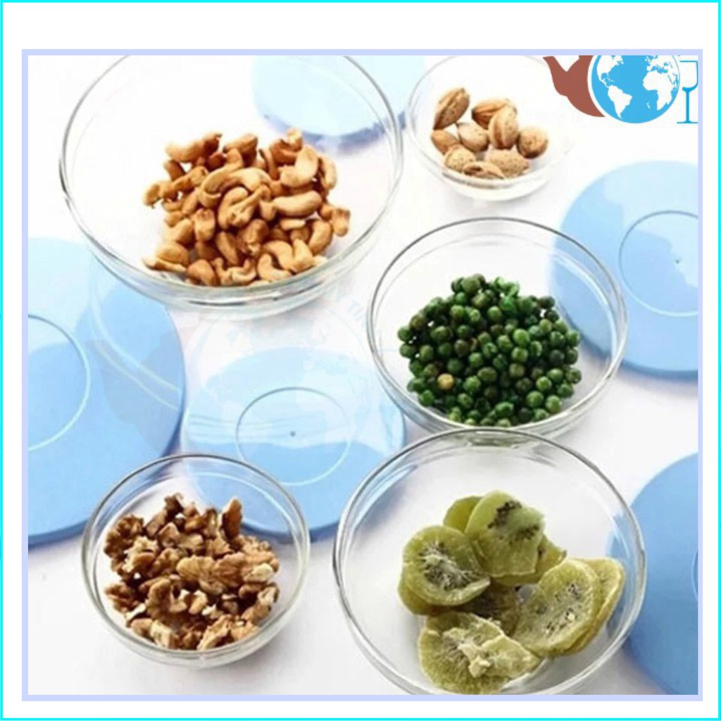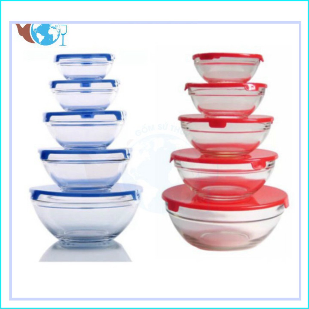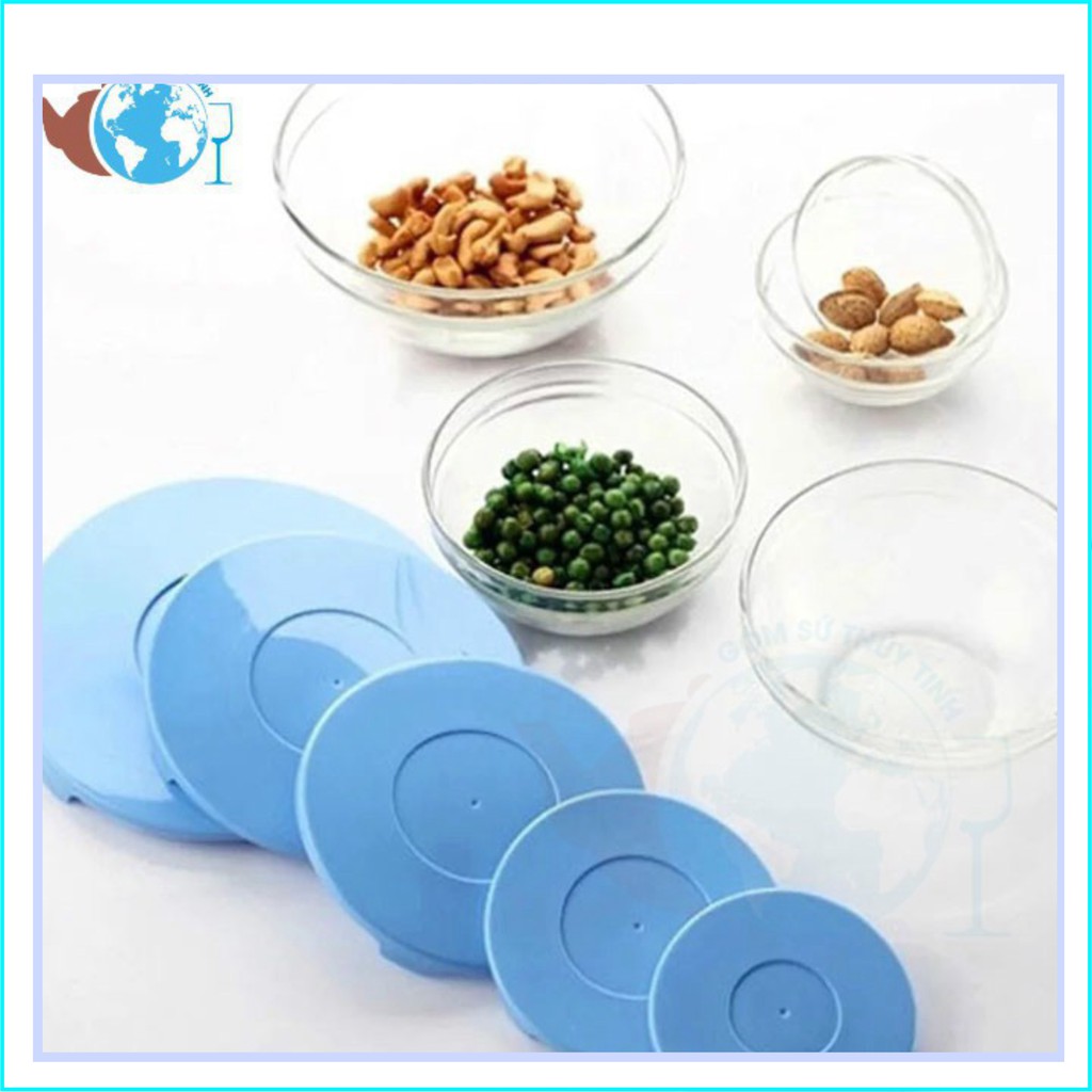 Bộ gồm 5 bát thủy tinh với 5 nắp nhựa tương ứng: