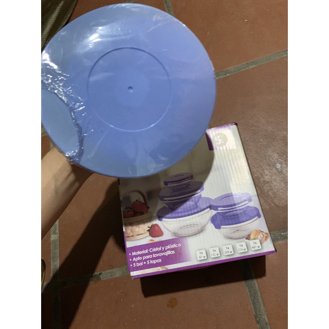 Bộ gồm 5 bát thủy tinh với 5 nắp nhựa tương ứng: