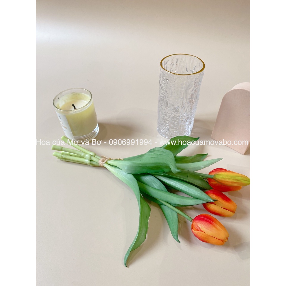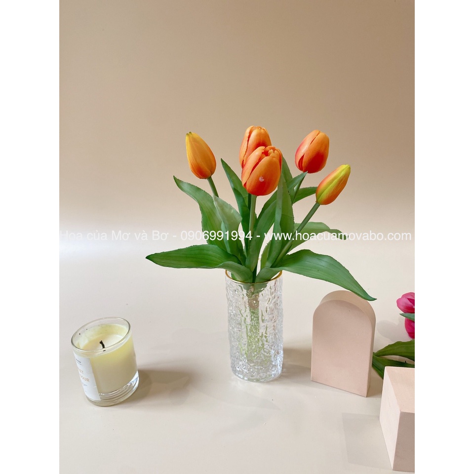 Bó 5 Bông Hoa Tulip Giả Nhiều Màu Cao Cấp Merber (Mơ & Bơ) Bó 3 Bông Hoa 2 Nụ Hoa - Hoa Decor Trang Trí Nhà, P.Khách