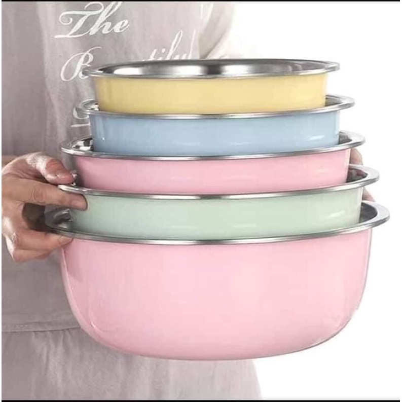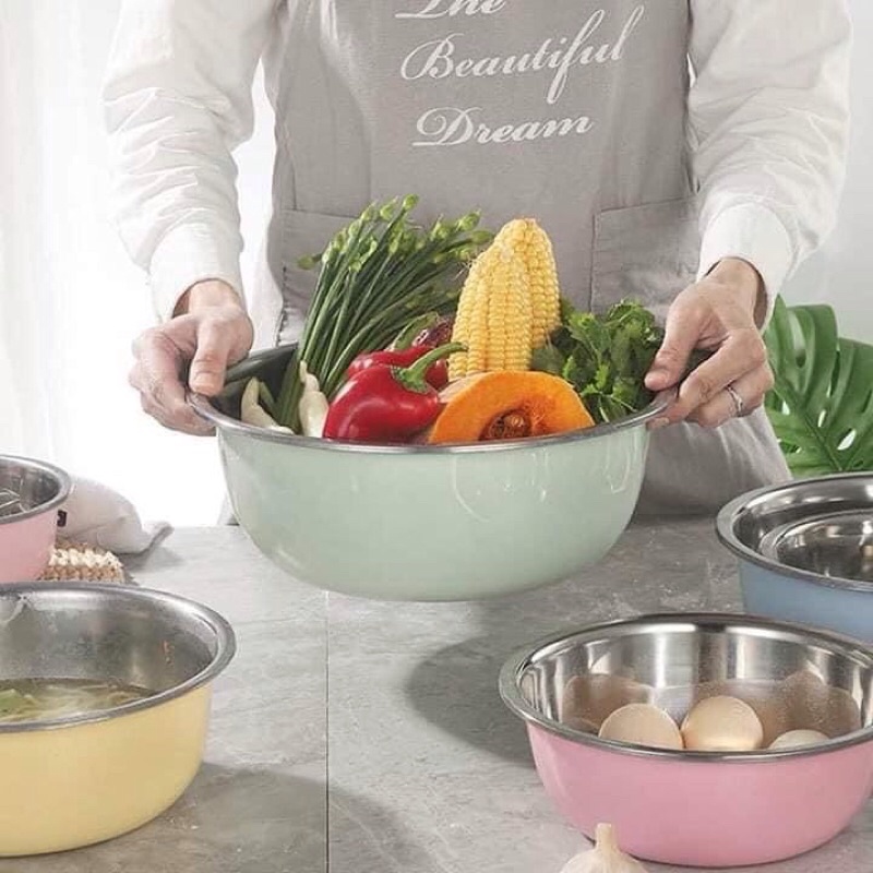 Bộ 5 chậu inox đựng thực phẩm với màu sắc đa dạng giúp căn bếp thêm tươi mới rạng rỡ hơn