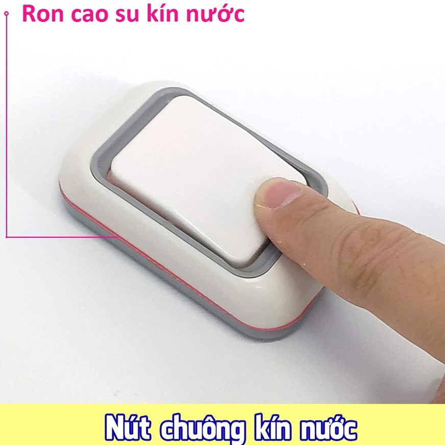 - Nút chuông lắp ngoài trời không thấm nước, có đèn báo hiệu đã nhấn.