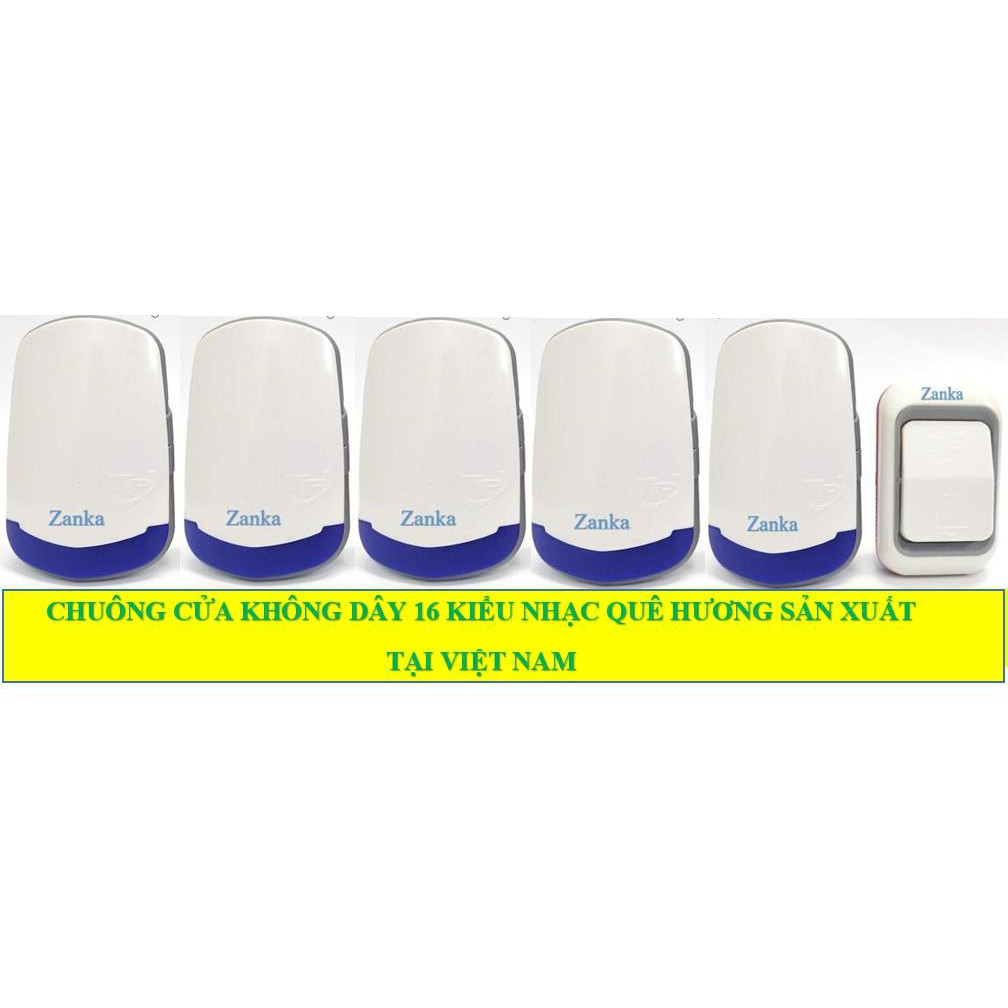 Bộ 5 Chuông 1 nút nhấn chuông cửa không dây Zanka TP-717 ( dùng cho ngôi nhà cao tầng)Chuông cửa sản xuất tại Việt Nam, Chuông có 16 Kiểu Chuông nhạc Việt thay đổi tùy sự lựa chọn