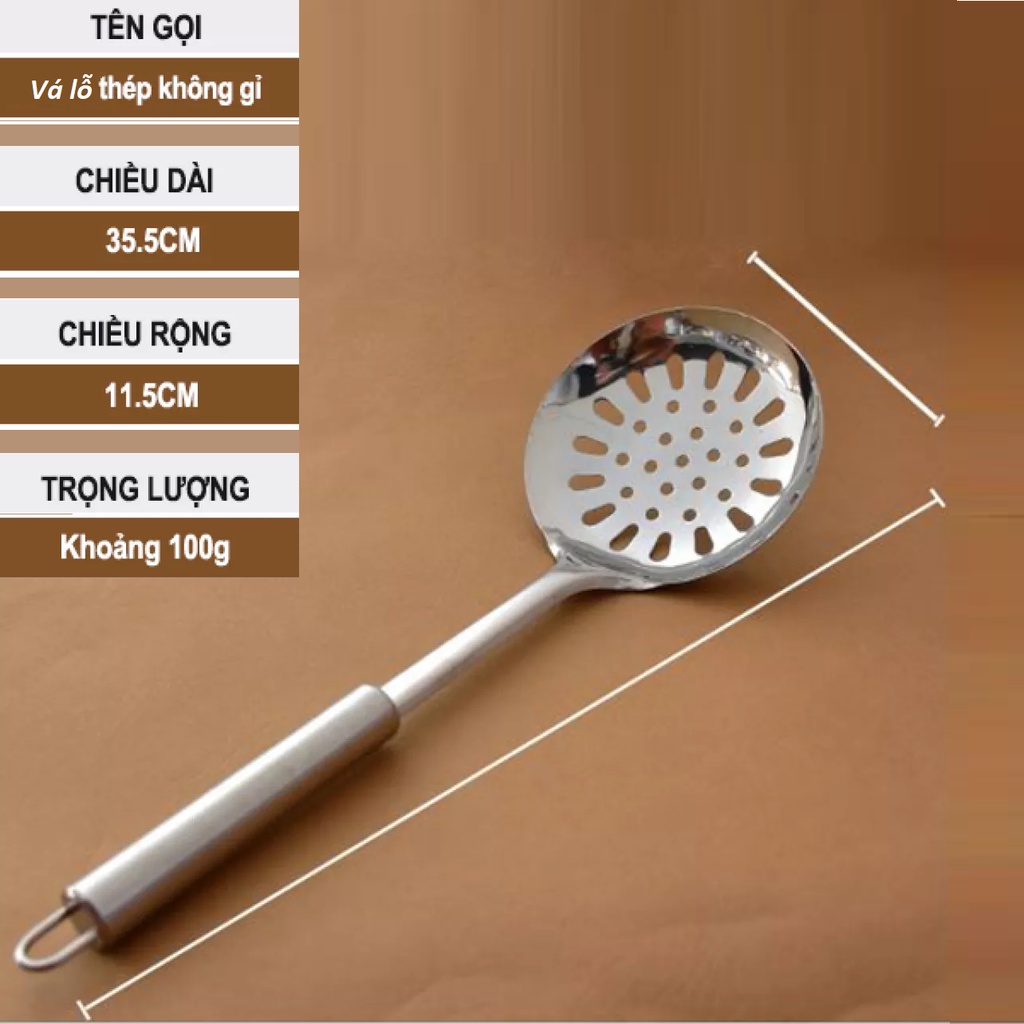 1. Bộ 5 Muỗng cơm, Vá Canh, Sạn, Sạn lỗ và Vá lỗ ( Gồm 5 món, Kích thước bên dưới)