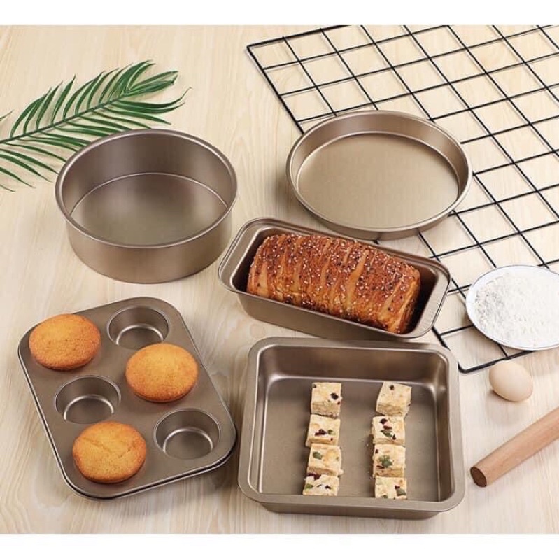 Nhà cửa & Đời sống > Dụng cụ nhà bếp > Lò nướng & phụ kiện || BỘ 5 KHAY NƯỚNG BẰNG THÉP KHÔNG DÍNH MÀU VÀNGCòn hàng