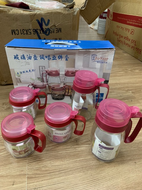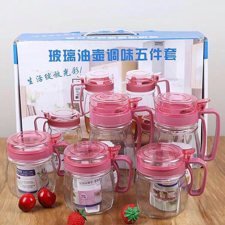 Nhà cửa & Đời sống > Bộ đồ bàn ăn > Bình nước & phụ kiện || BỘ 5 LỌ GIA VỊ THUỶ TINH SIÊU ĐẸP NẮP HỒNG ĐẬMCòn hàng
