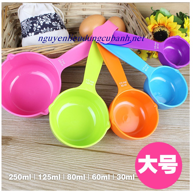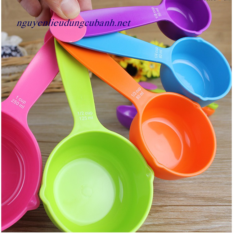 Bộ 5 muỗng đong nhựa sắc màuBộ muỗng đong 5 cup.