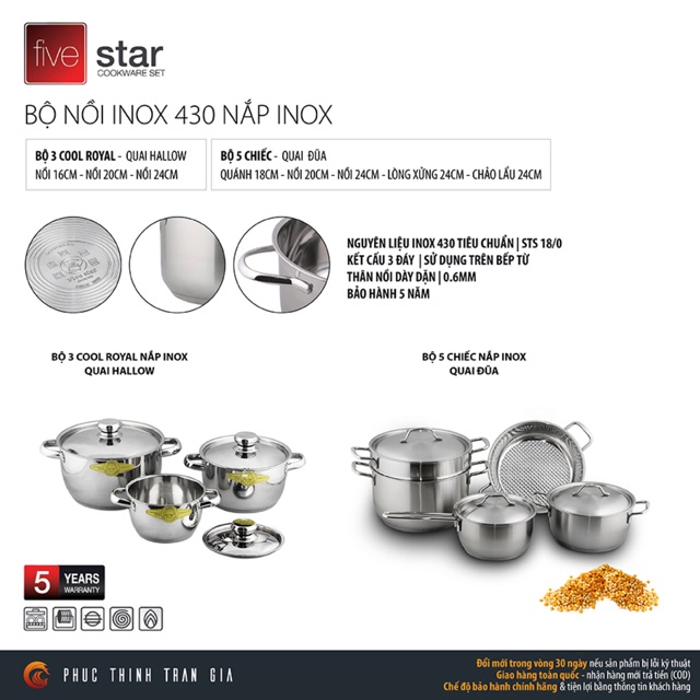 Thương hiệu: Five Star | Xem thêm các sản phẩm Bộ nồi của Five StarMô tả ngắn