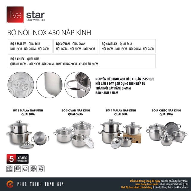 Thương hiệu: Five Star | Xem thêm các sản phẩm Bộ nồi của Five StarMô tả ngắn