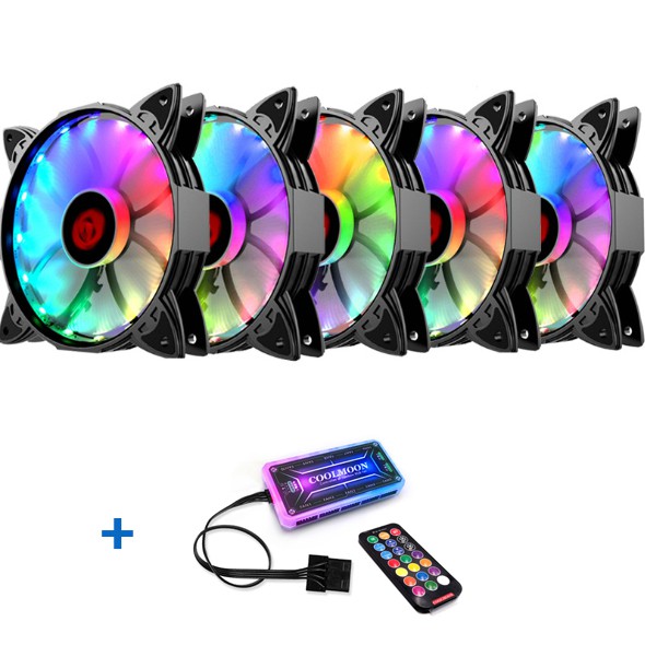 Máy tính & Laptop > Linh Kiện Máy Tính > Quạt và Tản Nhiệt || BỘ 5 Quạt Tản Nhiệt, Fan Case Coolmoon V1 LED RGB DIGITAL 16 TRIỆU MÀU, 366 HIỆU ỨNG - KÈM BỘ HUB VÀ REMOTECòn hàng
