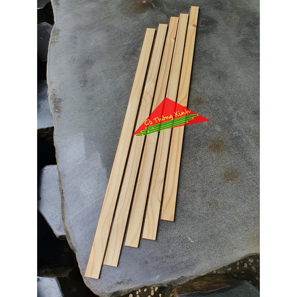 🌲🌲🌲 Sản phẩm gồm 5 thanh gỗ thông mỏng. Kích thước: Dày 1cm, rộng 3cm, dài 80cm.🌲🌲🌲 Sản phẩm đã được bào láng mịn 4 mặt và được tuyển chọn gia công về cùng 1 kích thước giúp Quý Khách tiết kiệm thời gian.