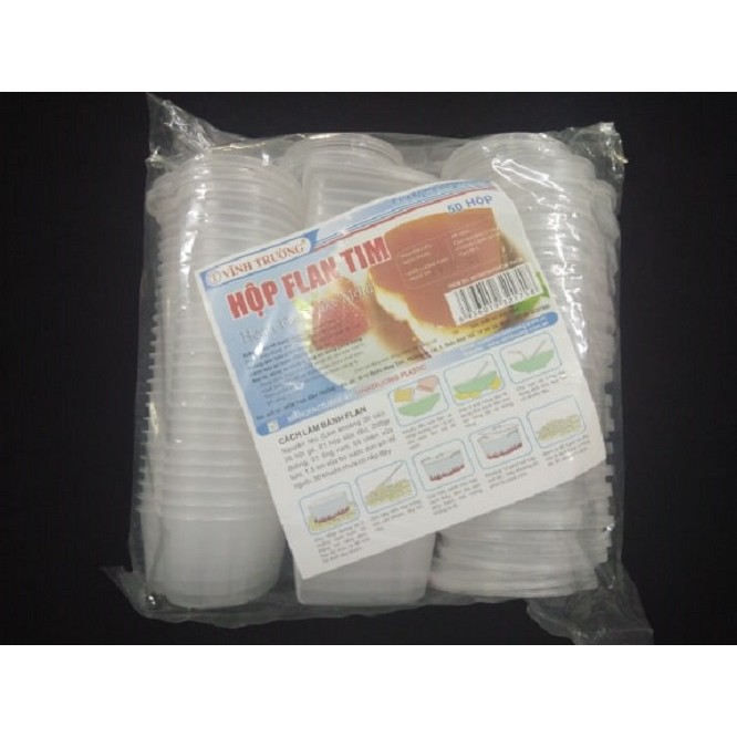 BỘ 50 HỘP LÀM BÁNH FLAN RAU CÂU SỮA CHUA HÌNH TRÁI TIM 7.5 CM CÓ NẮP ĐẬY