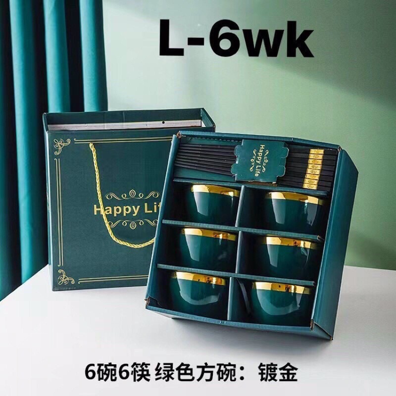 Nhà cửa & Đời sống > Bộ đồ bàn ăn > Tô || BỘ 6 BÁT SỨ VIỀN VÀNG KÈM 6 ĐÔI ĐŨA ĐEN,CAO CẤP PHONG CÁCH,SANG TRỌNGCòn hàng