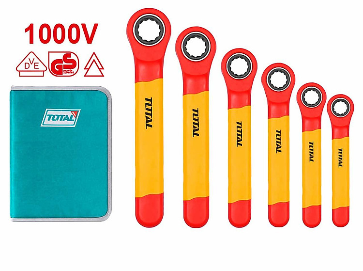 Bộ 6 cờ lê xoay chiều cách điệncó Chứng nhận 1000V, VDE / GS gồm size: 10mm, 12mm, 14mm, 15mm, 17mm, 19mm;