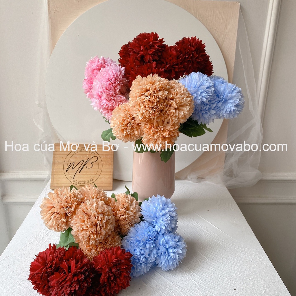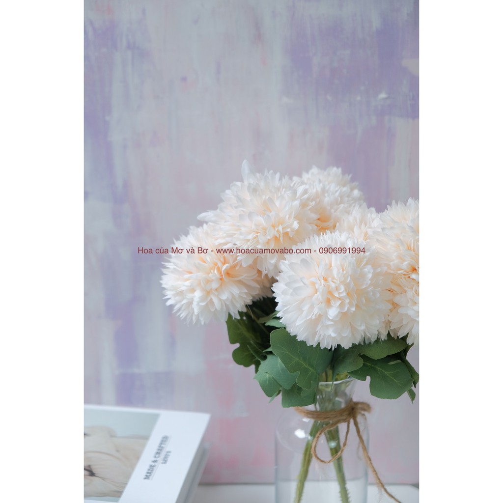 Bó 7 Bông Hoa Cúc PingPong Hàn Quốc Merber (Mơ & Bơ) Nhiều Màu Bông 8cm Dài 36cm - Cụm Hoa Khô Giả Trang Trí Decor