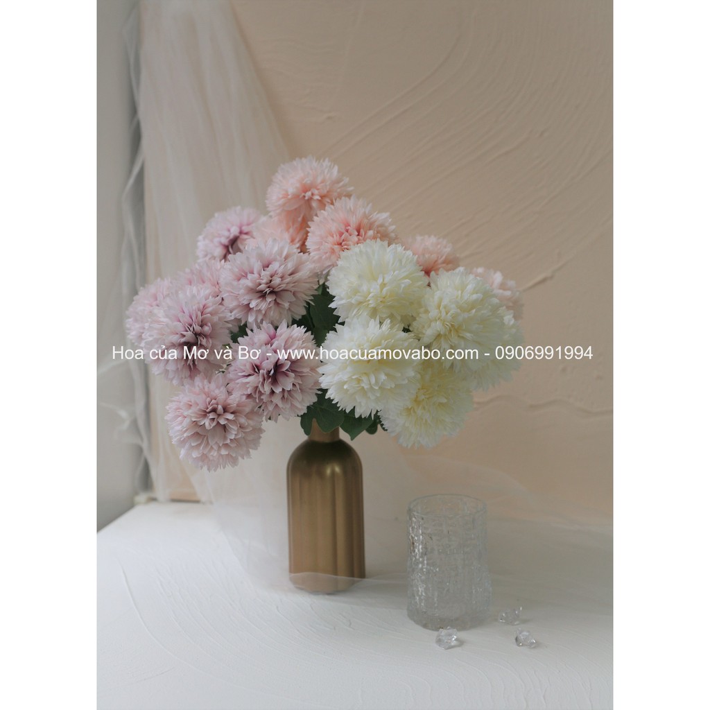 Giới thiệu Bó 7 Bông Hoa Cúc PingPong Hàn Quốc Merber (Mơ & Bơ) Nhiều Màu Bông 8cm Dài 36cm - Cụm Hoa Khô Giả Trang Trí Decor