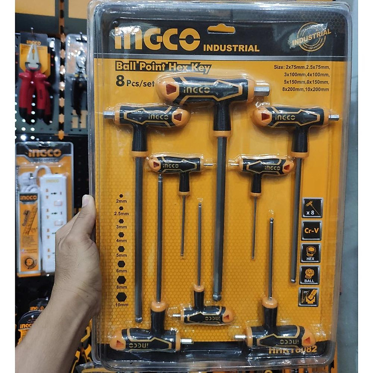 BỘ 8 CHÌA LỤC GIÁC TAY CẦM CHỮ T INGCO HHKT8082 - HÀNG CHÍNH HÃNG